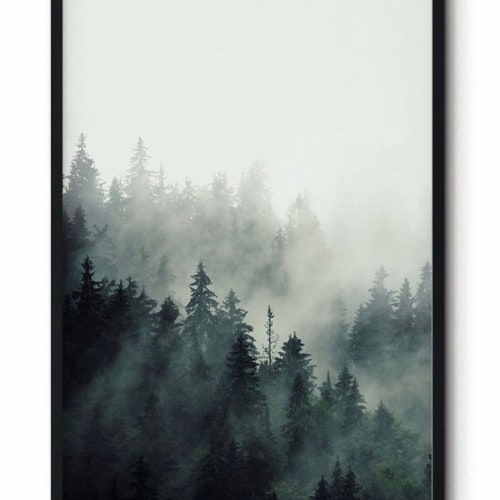 Pine Trees In Mist Foggy Pine Trees Painting Misty Forest Etsy Australia